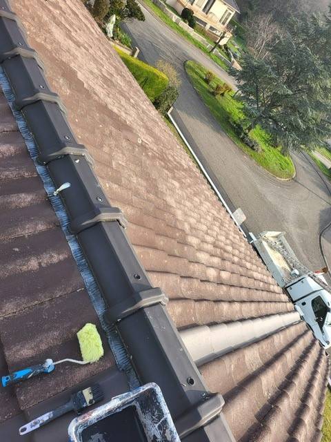 Enfin nous finirons par effectuer une mise en peinture en résine micro poreuse spéciale toiture, nous appliquerons une deuxième couche qui sera garantit trente ans par le fabricant.